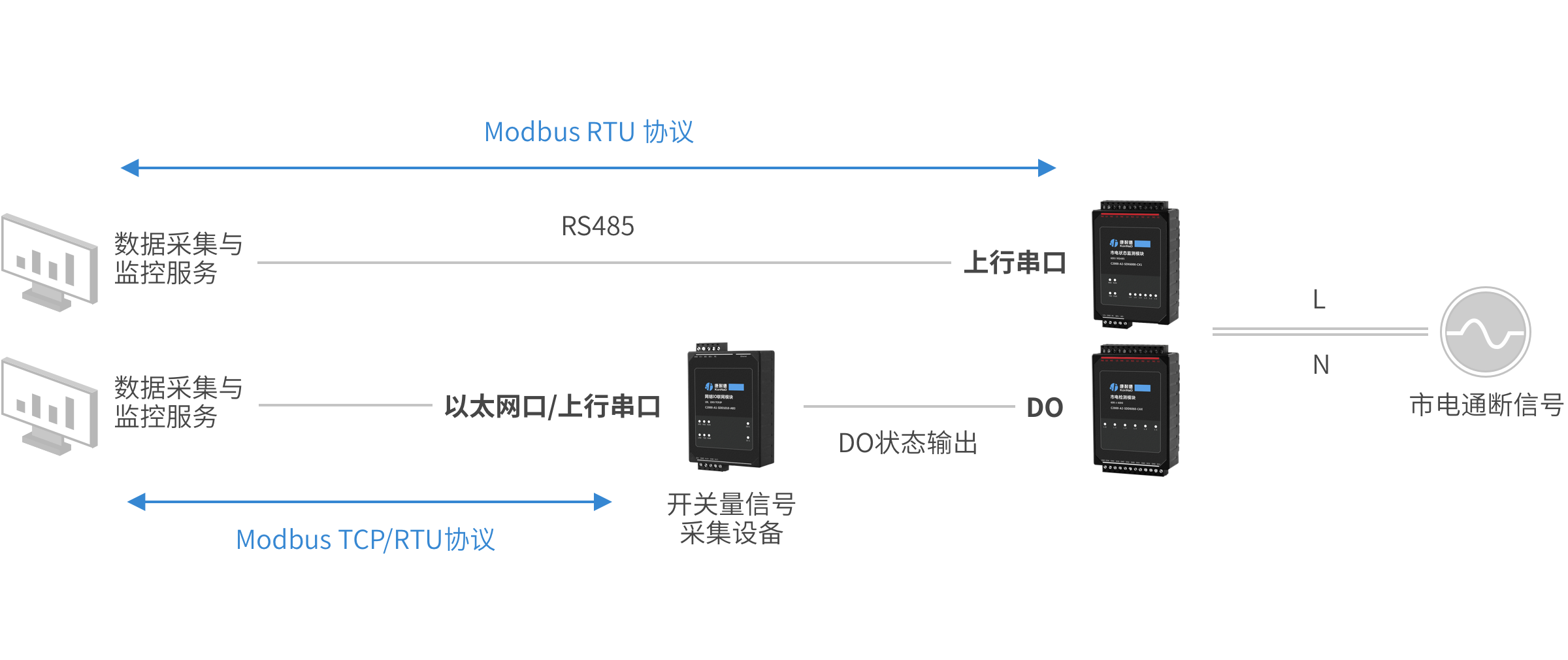 对上提供 DO 或 RS485 接口,实现 6 路市电状态采集