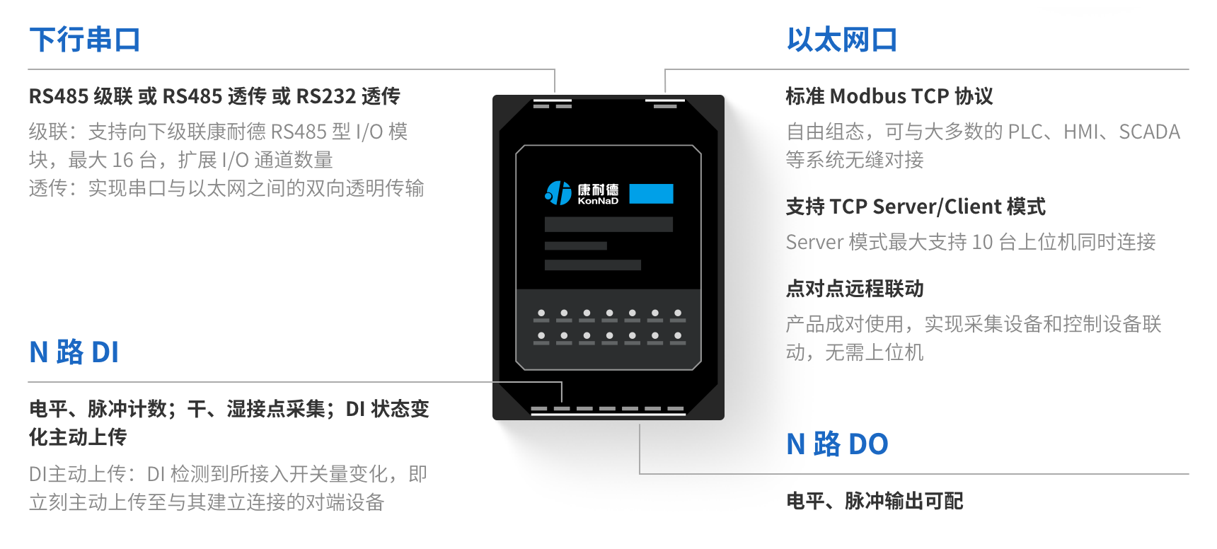 Ethernet ⇋ 16DI + 16DO 1U 机架式