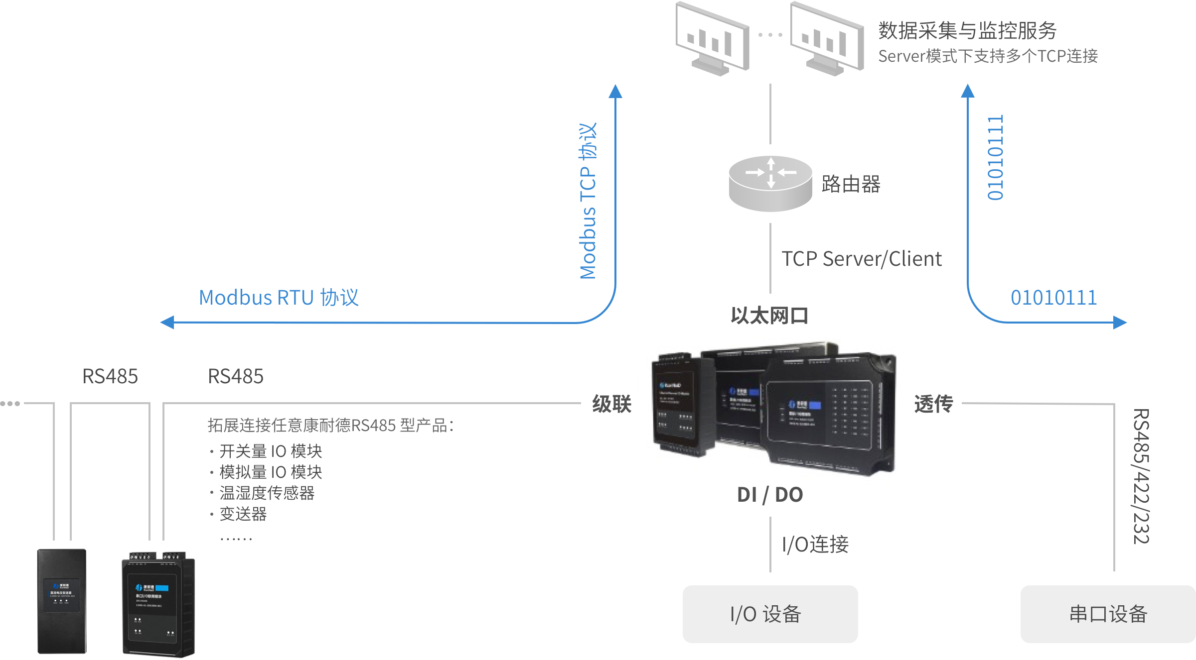 | 网口速率 | 数量 | DI | DO | 输入模式 | 接口类型 | 输出模式 | 输出类型 | 485级联 | 485透传 | 232透传 | ||